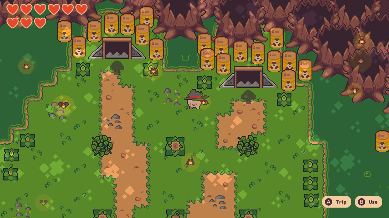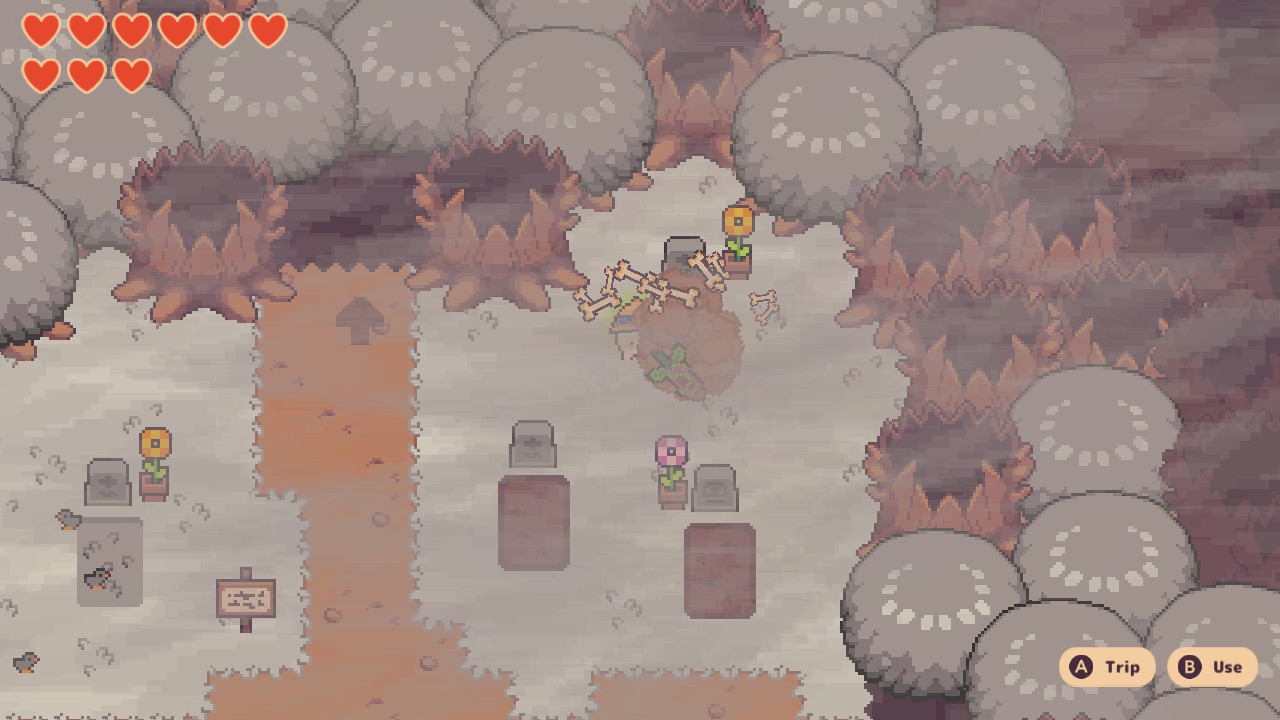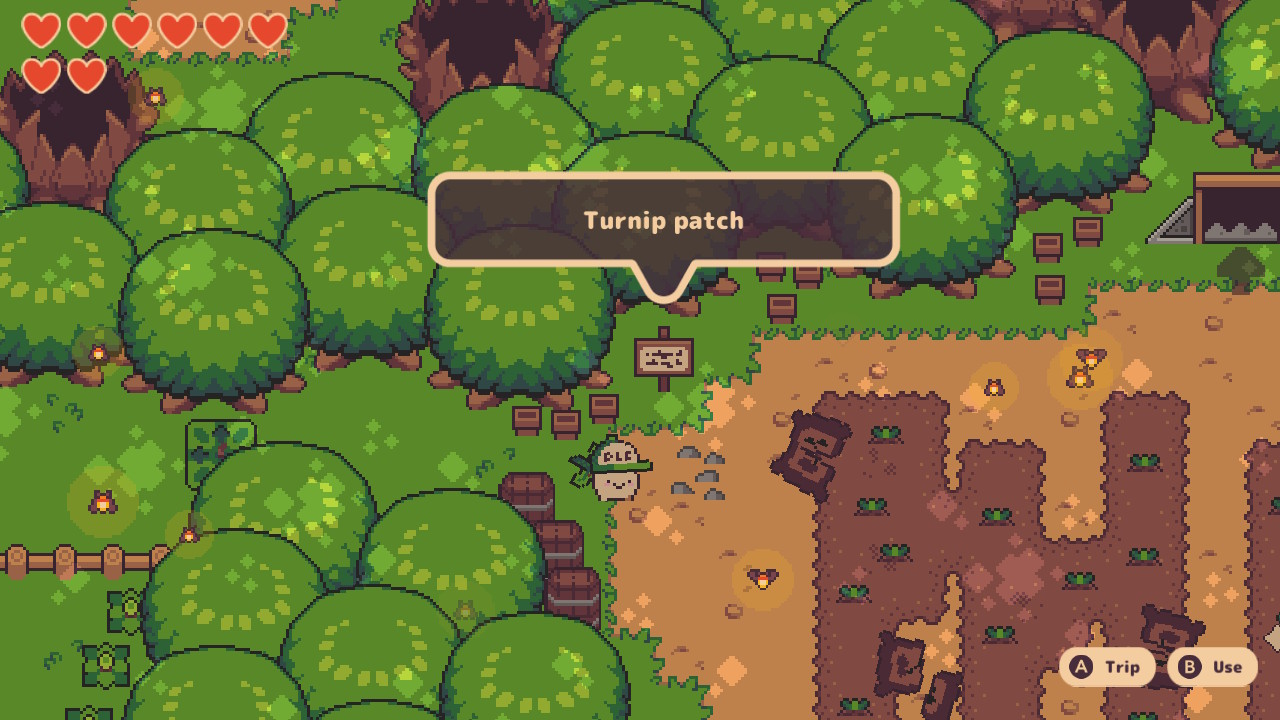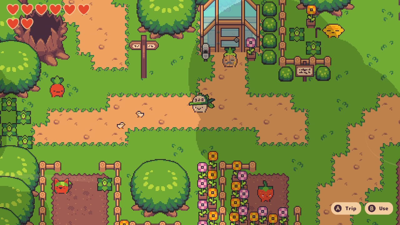 Sam gameplay lekko przywodzi na myśl klasyczne tytuły z GameBoya, ale oczywiście mechaniki są odpowiednio uwspółcześnione. Nasza rzepka-rozrabiaka ma zresztą do dyspozycji mały arsenał (miecz, widelec, łopatę) do walk z mniejszymi i większymi przeciwnikami oraz mocno dziwacznymi bossami. W mojej opinii najgorszym bossem była zmutowana nastolatka z dodatkowymi kończynami i plująca kwasem, długo się z nią męczyłam. Nie, Turnip Boy nie jest trudną grą, po prostu ja mam fatalnego skilla – gracz ze sprawnym układem nerwowym poradzi sobie z tymi bossami bez żadnego problemu.