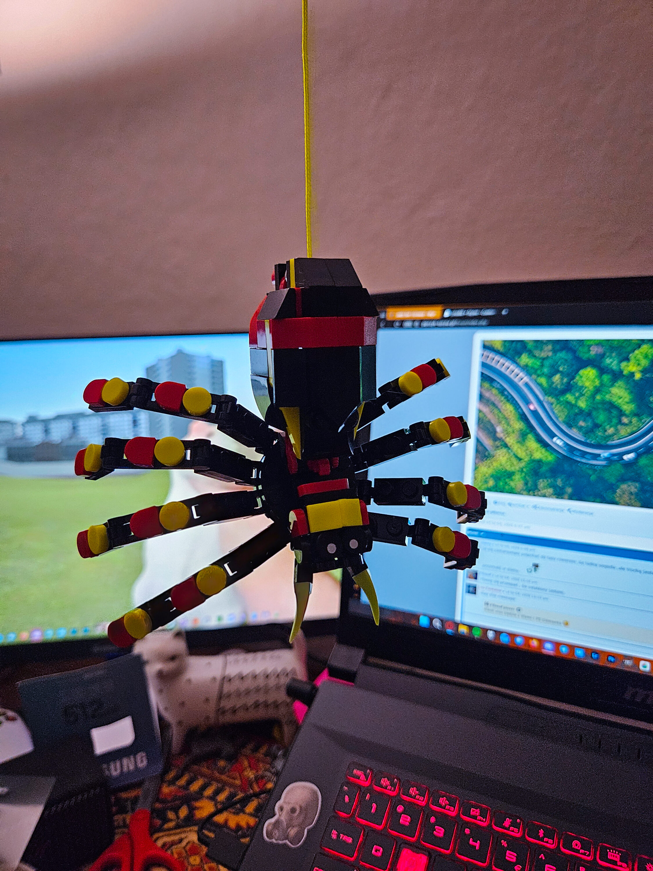 Pająk, którego kupiłam niedawno mojemu chłopu. Z zestawu można zbudować również skorpiona lub węża. Pająk jest superowy, a żeby było fajniej – ma swoją “pajęczynę”, za którą można go gdzieś zawiesić jako ozdobę.
